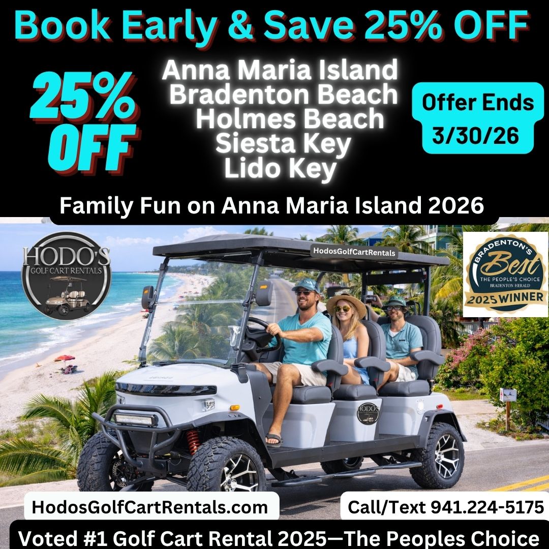 At Hodo’s Golf Cart Rentals, we are committed to providing a top-quality golf cart rental experience on Anna Maria Island. Our focus on exceptional customer service, well-maintained vehicles, and a smooth booking process has helped us earn the recognition of being voted the #1 golf cart rental on Anna Maria Island in 2025. Whether you're visiting for a relaxing beach getaway or exploring local attractions, our golf carts offer a convenient and enjoyable way to get around the island.