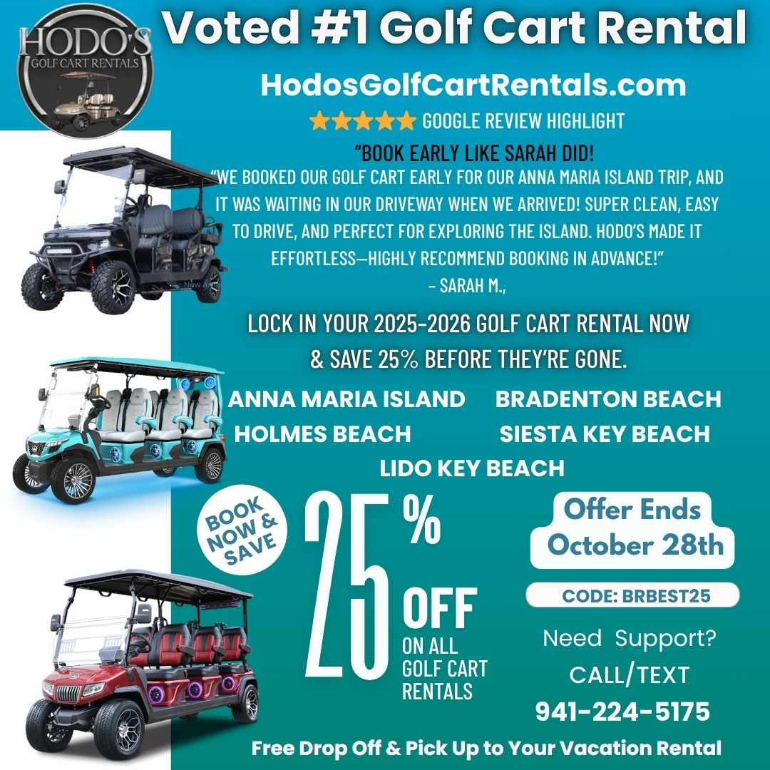 Bradenton's Best Special Offer Apply Code BRBEST25 for 25% OFF Minimum of 3 Day Rental. Offer Ends October 28th