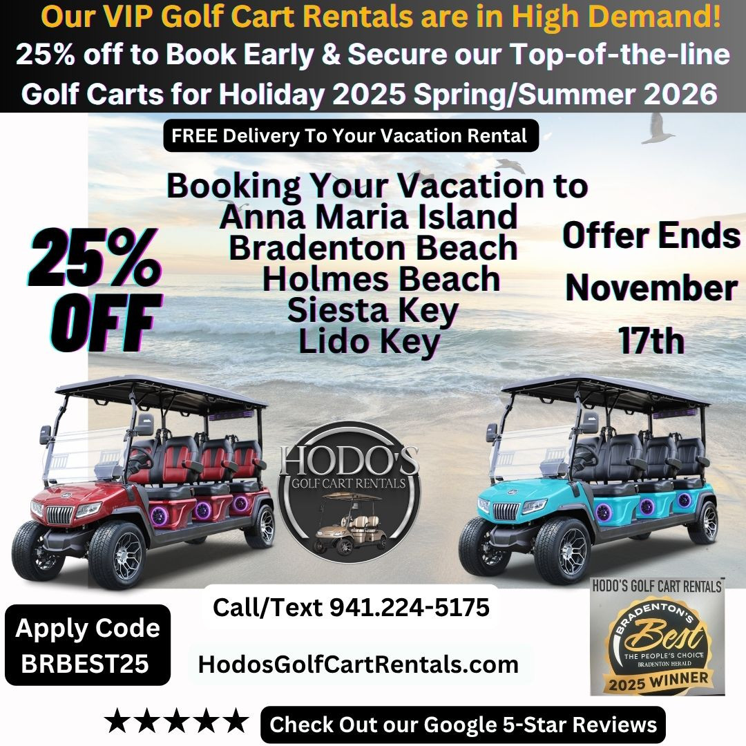 Bradenton's Best Special Offer Apply Code BRBEST25 for 25% OFF Minimum of 3 Day Rental. Offer Ends Nov 17th