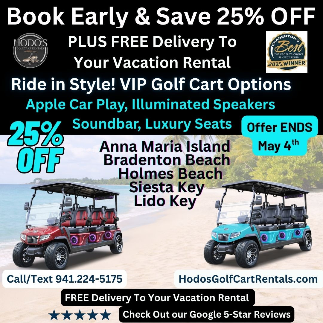 Please Call/Text 941-224-5175 if you need support or don't see availability! We get last minute Cancellations & always have new carts arriving!