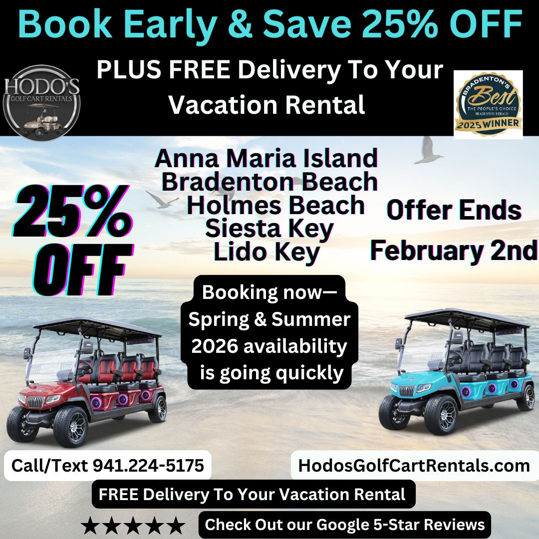 Please Call/Text 941-224-5175 if you need support or don't see availability! We get last minute Cancellations & always have new carts arriving!