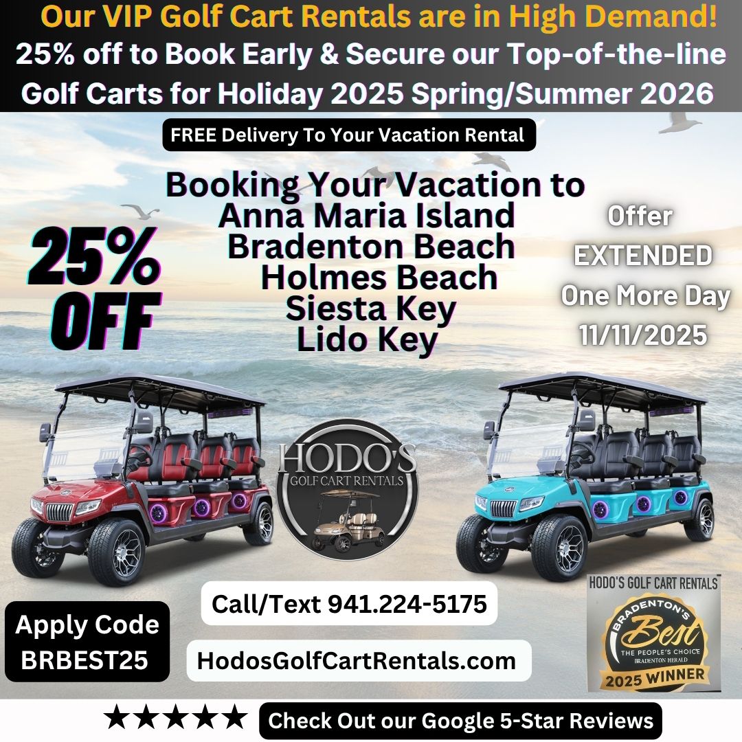 Bradenton's Best Special Offer Apply Code BRBEST25 for 25% OFF Minimum of 3 Day Rental. Offer Ends Nov 9th