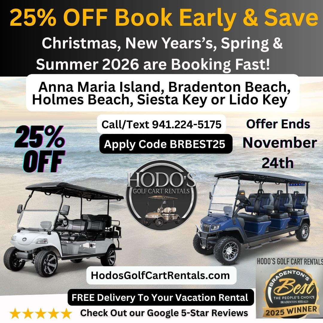 Bradenton's Best Special Offer Apply Code BRBEST25 for 25% OFF Minimum of 3 Day Rental. Offer Ends Nov 24th