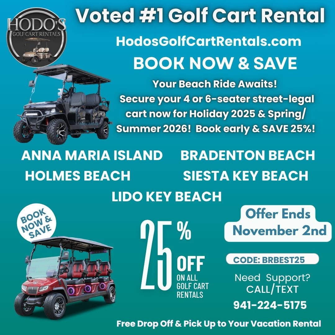 Bradenton's Best Special Offer Apply Code BRBEST25 for 25% OFF Minimum of 3 Day Rental. Offer Ends Nov 2nd