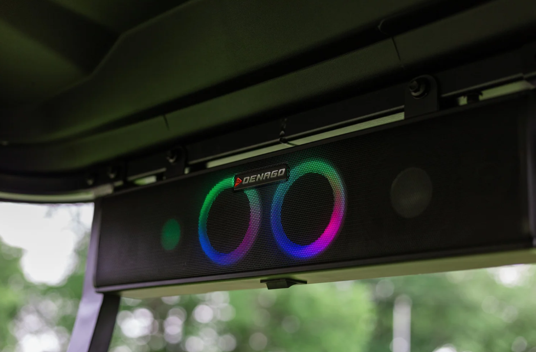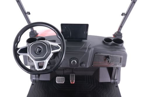 The Denago EV Rover XL6 is a rugged, 6 seater electric golf cart that blends a lifted, futuristic design with powerful Lithium battery. It offers a comfortable ride with a 4 forward + 2 rear seating configuration, an independent suspension with hydraulic shocks, and a smooth, quiet operation. Key features include a rear camera, a digital display, Apple CarPlay and Android Auto connectivity, hydraulic disc brakes for safety, and 14-inch all-terrain tires!