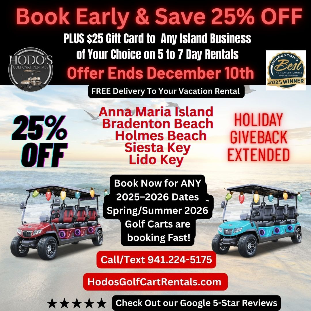 Holiday Special Extended: Use Code GIVEBACK25 for 25% OFF! 5–7 Day Rentals Get a $25 Island Gift Card. Offer Ends Dec 10th at Midnight! 25 % discount also applies to a 3-day minimum.